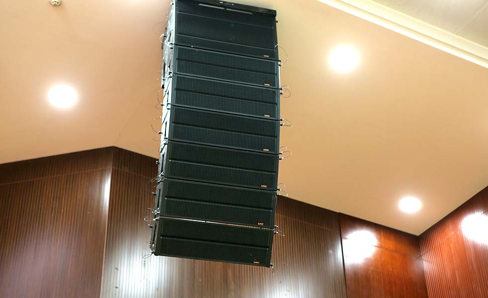 第一師阿拉爾市現(xiàn)代農(nóng)業(yè)高技能人才公共實(shí)訓(xùn)基地會(huì)議室擴(kuò)聲設(shè)備提供、安裝、調(diào)試及技術(shù)支持服務(wù)。主擴(kuò)音響選用AT線陣系列,吊掛在舞臺(tái)兩側(cè)。