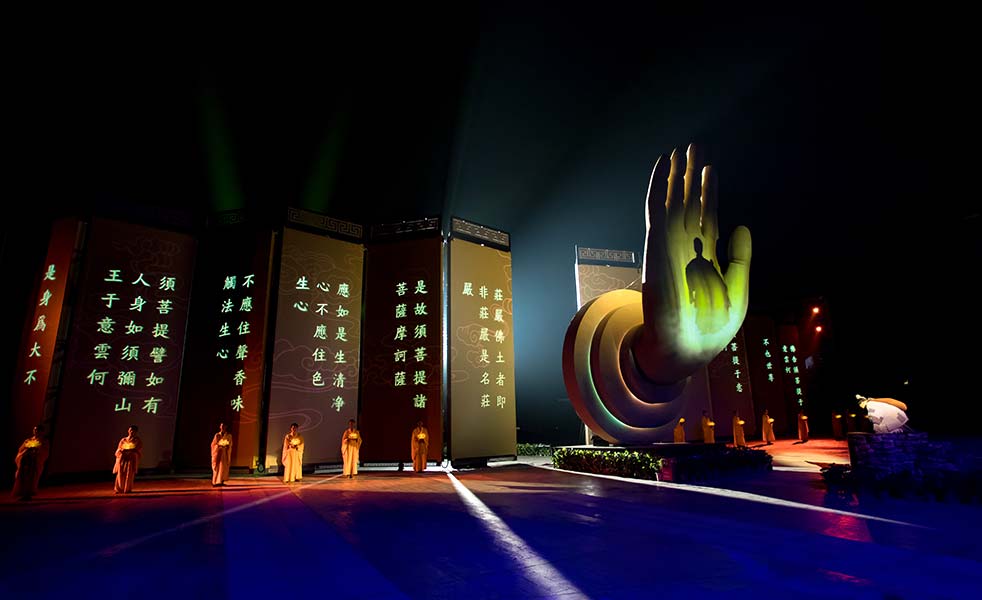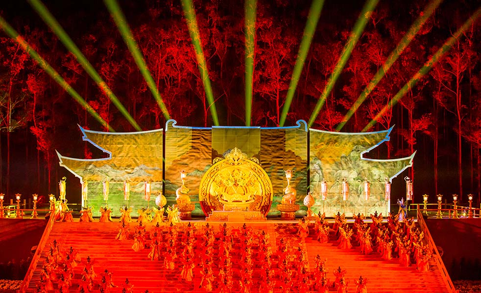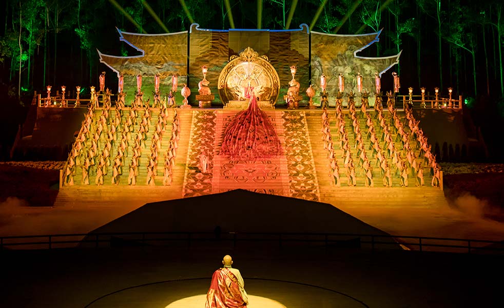 《禪宗圣域?六祖惠能》匯聚國家級主創(chuàng)團隊,融合全球最新現(xiàn)代光影技術,歷時三年的精心籌備,由500多位專業(yè)演職人員傾情演繹、1800名觀眾共同參與,觀眾即演員,行走即修行,創(chuàng)新性地改變了一般的觀演關系,呈現(xiàn)一出全球最大規(guī)模、最具特色、最具新意的禪文化音畫大典。成就一部觀眾親自參與的禪意巨作、打造一場光影與時空融匯的禪意盛宴、啟迪一次人生修行的禪悟之旅。