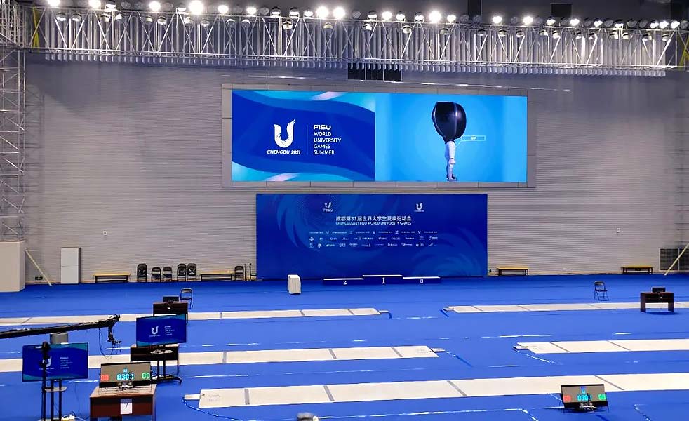 郫都區(qū)體育中心,作為成都大運(yùn)會(huì)的重要比賽場(chǎng)館之一,是本屆大運(yùn)會(huì)擊劍項(xiàng)目唯一的比賽場(chǎng)館。為保障賽事工作,滿(mǎn)足大運(yùn)會(huì)需求,場(chǎng)館進(jìn)行改造、升級(jí),將原先的籃球館、游泳館、羽毛球館改造成擊劍決賽館、預(yù)賽館、熱身館。