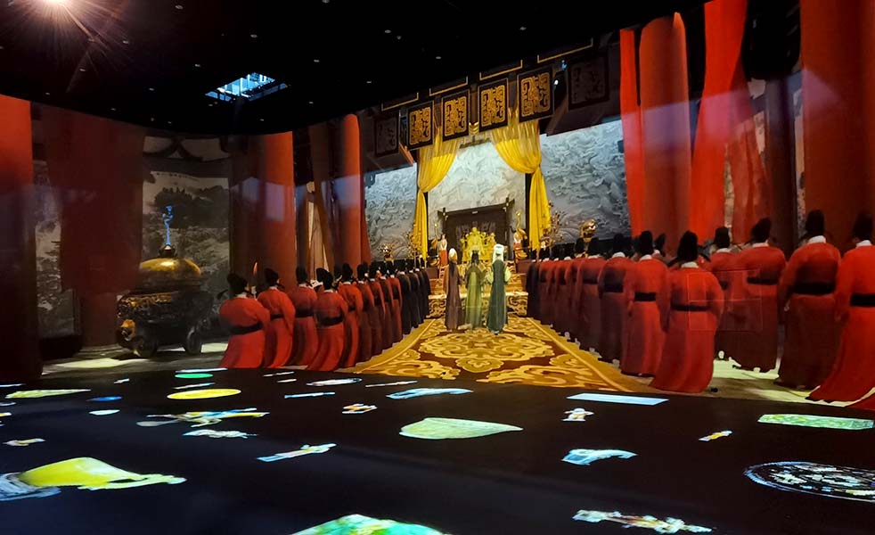 宮里有戲·大明宮文化數(shù)字體驗(yàn)中心,通過(guò)最尖端的數(shù)字光影技術(shù)結(jié)合唐朝鼎盛文化,打造高新科技體驗(yàn)中心。