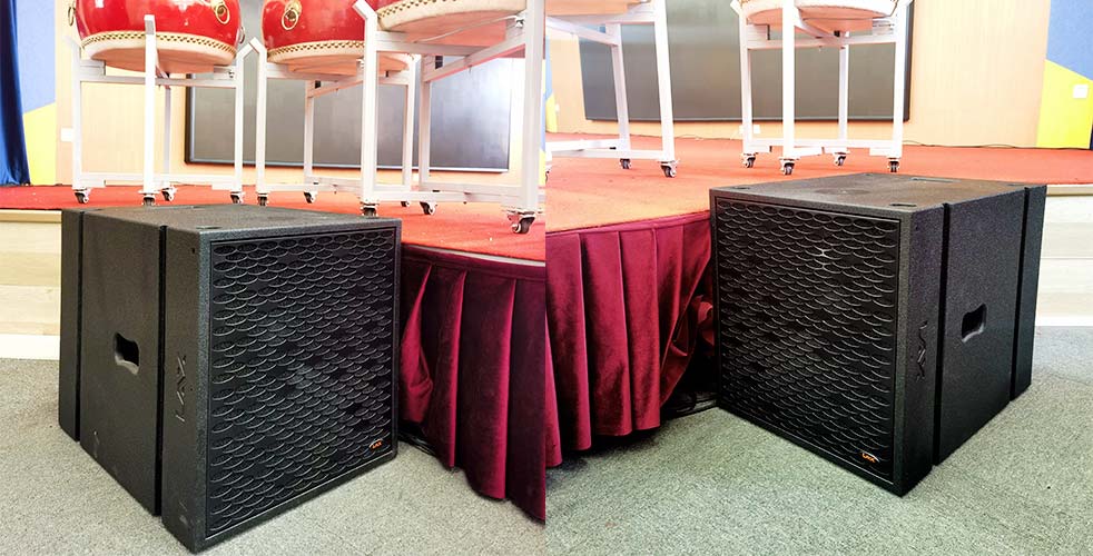 搭配每組1只ATS115BA-單15寸有源超低頻音箱,落地擺放在舞臺兩側,組成陣列,均勻覆蓋整個觀眾席。
