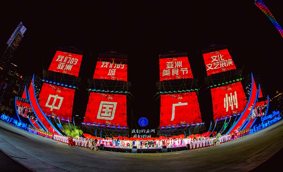 廣州亞洲美食節(jié)“我們的亞洲,我們的城”開幕式文化文藝展演在海心沙亞運廣場內(nèi)震撼上演。