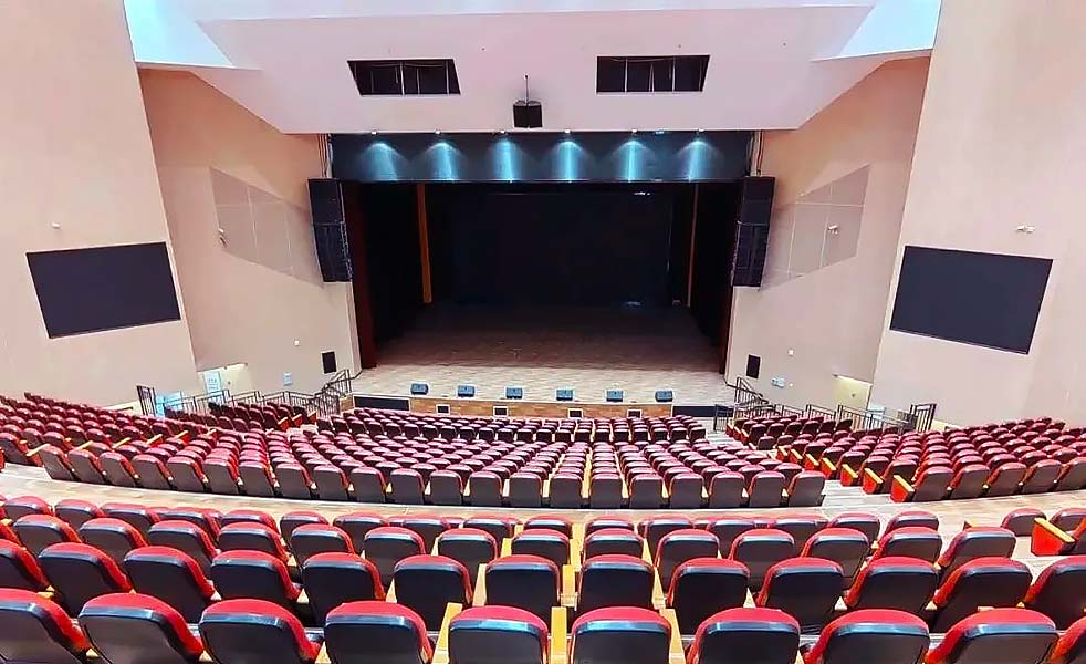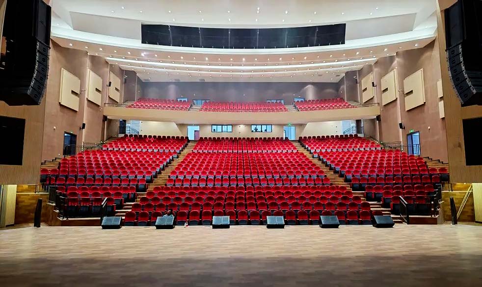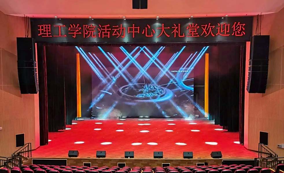 貴州理工學(xué)院貴安校區(qū)師生活動中心大禮堂采用12只LAX OP3122雙12寸線性陣列揚(yáng)聲器作為整個大禮堂的主擴(kuò)聲系統(tǒng),配套4只ST218BP雙18寸可吊掛陣列式超低頻揚(yáng)聲器作為低頻擴(kuò)展,使用2只TR115單15寸揚(yáng)聲器隱藏于聲橋內(nèi)作為中置聲道揚(yáng)聲器,地面擺放4只為增加大禮堂的低頻表現(xiàn)力及震撼感,使用4只S218B超低揚(yáng)聲器落地式擺放做為低頻動態(tài)擴(kuò)展使用。