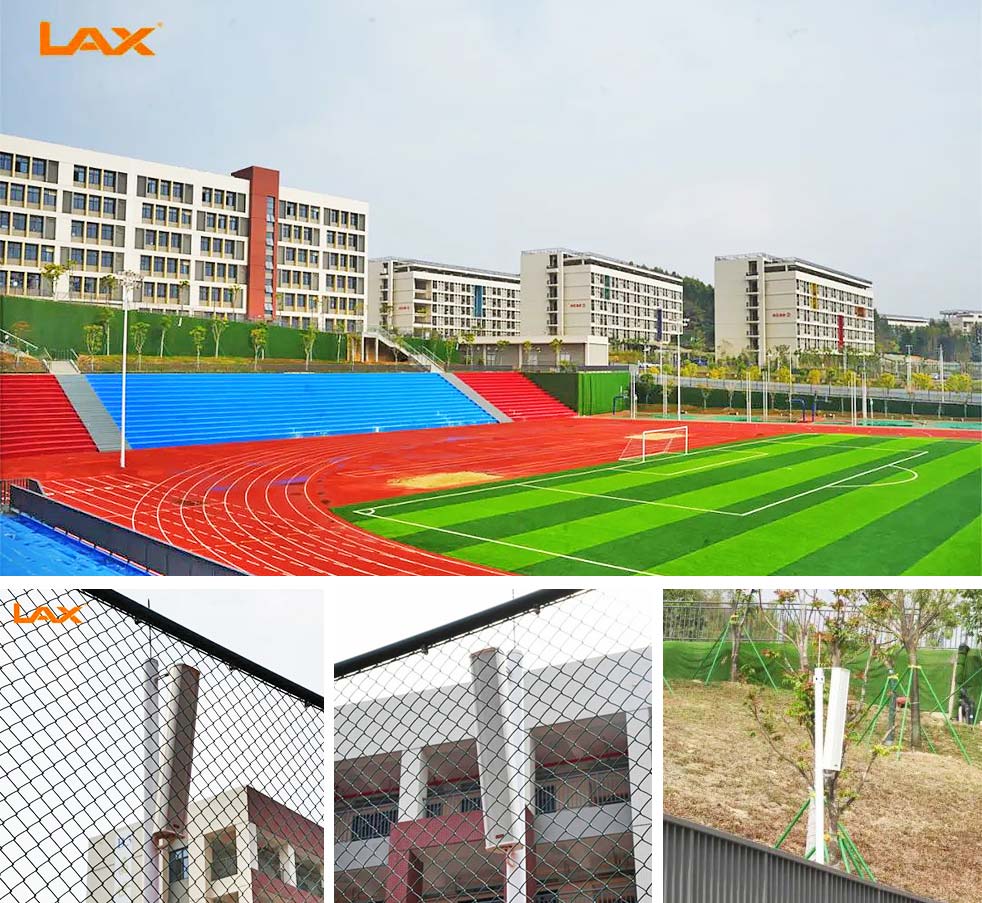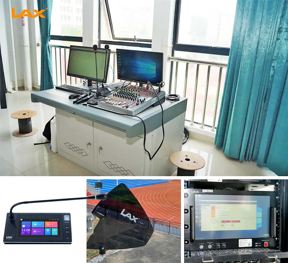 運(yùn)動(dòng)場(chǎng)采用18只120W戶外防水音柱,平均分布400米跑道圈內(nèi),使用2臺(tái)1500W功放驅(qū)動(dòng),設(shè)備放置廣播站內(nèi)。