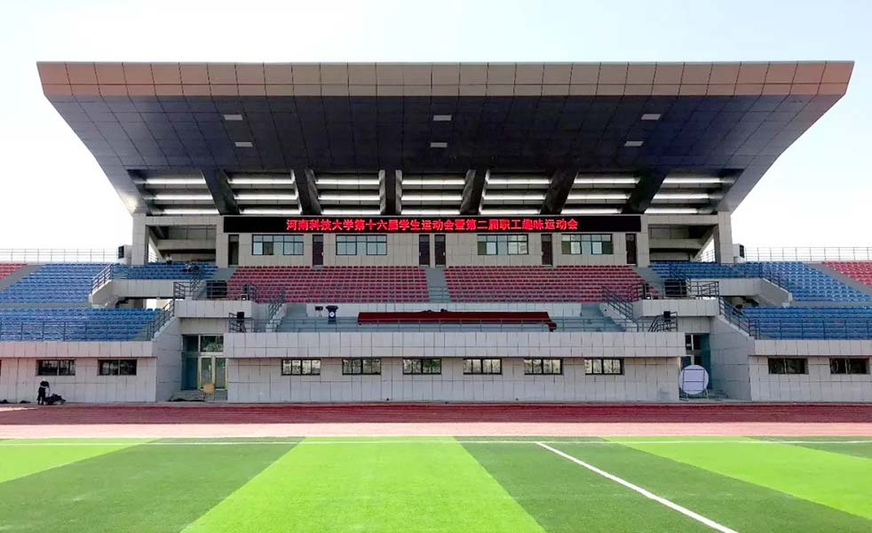 開元校區(qū)主體育場位于農醫(yī)組團東南側,鄰近學校南門,占地面積近54000平方米,包括看臺及場地兩部分。其中看臺部分占地面積2745平方米,為框架三層,建筑面積3990平方米,內設體育訓練用房、器材室、貴賓室、辦公及教學用房??磁_設座椅3440個;場地部分包括400米標準跑道,標準網球場3個,籃球場5個,排球場2個。 LAX為該體育館音頻設備提供、安裝、調試及技術支持服務。