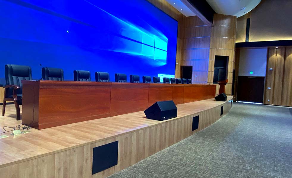 報告廳使用的主擴是AS1563兩只,S218B兩只,拉聲項M2115/96兩只,輔助U8四只,返聽則是M2115/96兩只,臺唇U26四只。