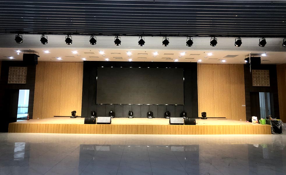結(jié)合該公司多功能廳的實(shí)際擴(kuò)聲需求和功能,在舞臺(tái)上方吊掛了LAX AT110-V2單10寸二分頻二驅(qū)動(dòng)線陣音響作為主擴(kuò)聲系統(tǒng) ,在舞臺(tái)擺放LAX FS18B超低頻音箱為整場(chǎng)提供良好的低頻沖擊力,還有LAX AT12M返聽音箱及LAX SC112臺(tái)唇補(bǔ)聲音箱。在四周壁掛TW112輔助音箱為中后場(chǎng)分區(qū)域補(bǔ)聲。