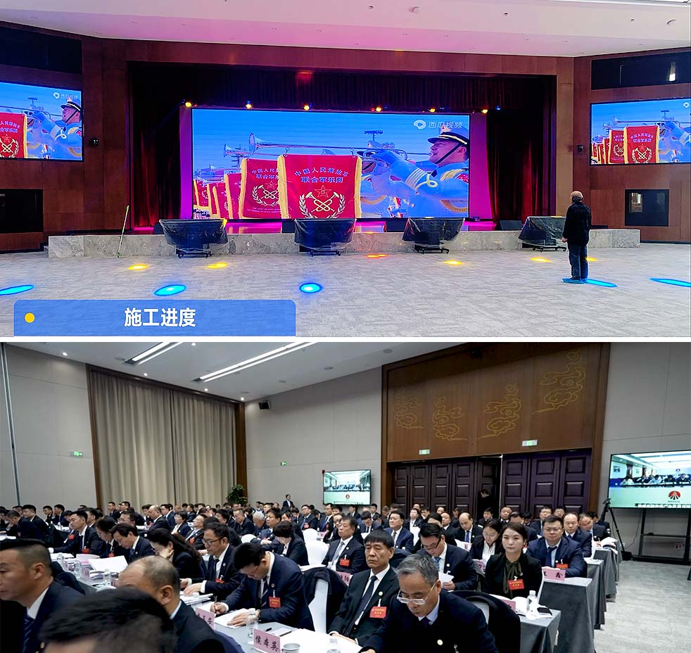 整套顯示系統(tǒng)由1塊中央主屏、2塊轉(zhuǎn)播屏、4塊98寸的移動顯示屏組成,該套顯示系統(tǒng)既可以滿足大會議廳的各類大型會議、文藝活動的顯示需求,也可以通過4臺98寸的移動顯示屏來滿足移動隔斷隔開的小會議廳的各類會議顯示需求,另外配置4臺65寸的移動顯示屏來滿足會議返看需求。