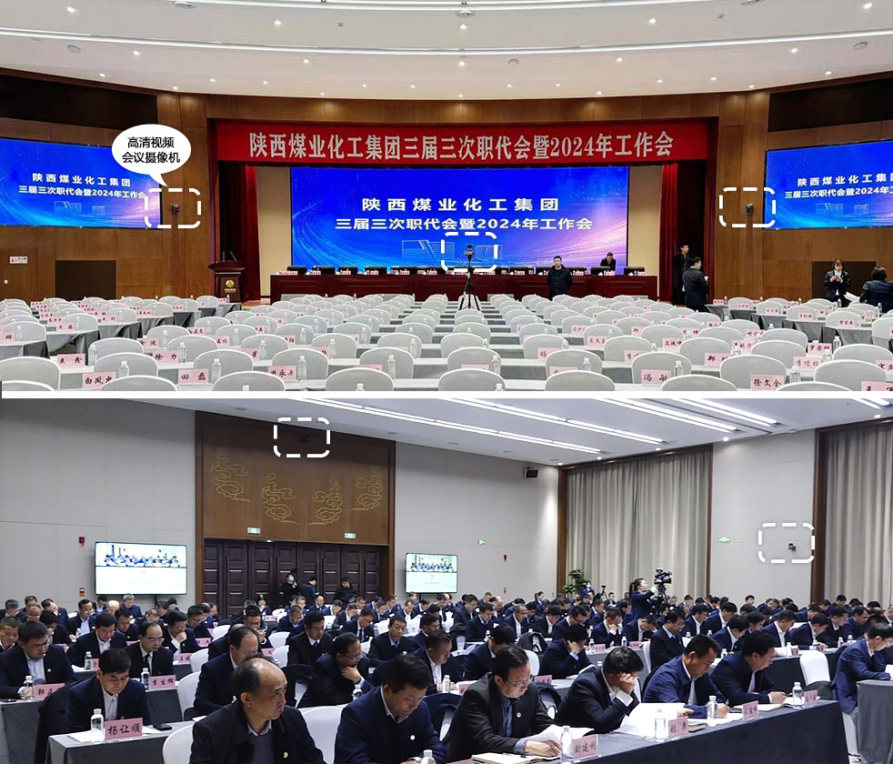 會議廳視頻會議系統(tǒng)配置遠(yuǎn)程視頻會議主機(jī)1臺,高清視頻會議攝像機(jī)9臺(固定安裝5臺,流動使用4臺)、采集卡2套及配套的輔料。視頻會議的實(shí)現(xiàn)有兩種方式,一種是通過遠(yuǎn)程視頻會議主機(jī)實(shí)現(xiàn),一種是通過采集卡開騰訊會議,根據(jù)使用需求選用視頻會議的實(shí)現(xiàn)方式,滿足視頻會議辦公需要。