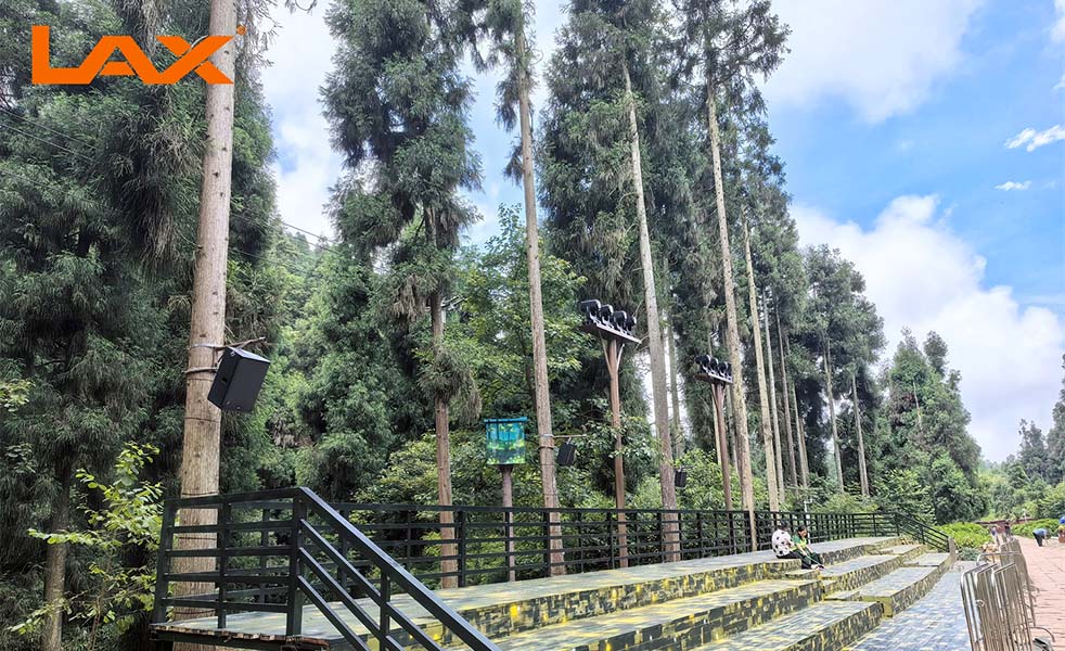 螢光奇遇天臺(tái)山夜游項(xiàng)目位于四川省邛崍市天臺(tái)山景區(qū)內(nèi),分為初遇百年古樹、熒光棧道、熒光科普館、出發(fā)-卵、歧途森林步道、歧途劇場(chǎng)、覺醒雨后斜陽(yáng)、覺醒之蛹、初心劇場(chǎng)、寺廟外墻,總共十個(gè)區(qū)域。根據(jù)LAX技術(shù)人員實(shí)地勘察評(píng)估景區(qū)環(huán)境條件、設(shè)計(jì)概算和設(shè)備使用要求,為螢光奇遇天臺(tái)山夜游項(xiàng)目提供整體擴(kuò)聲系統(tǒng)解決方案。