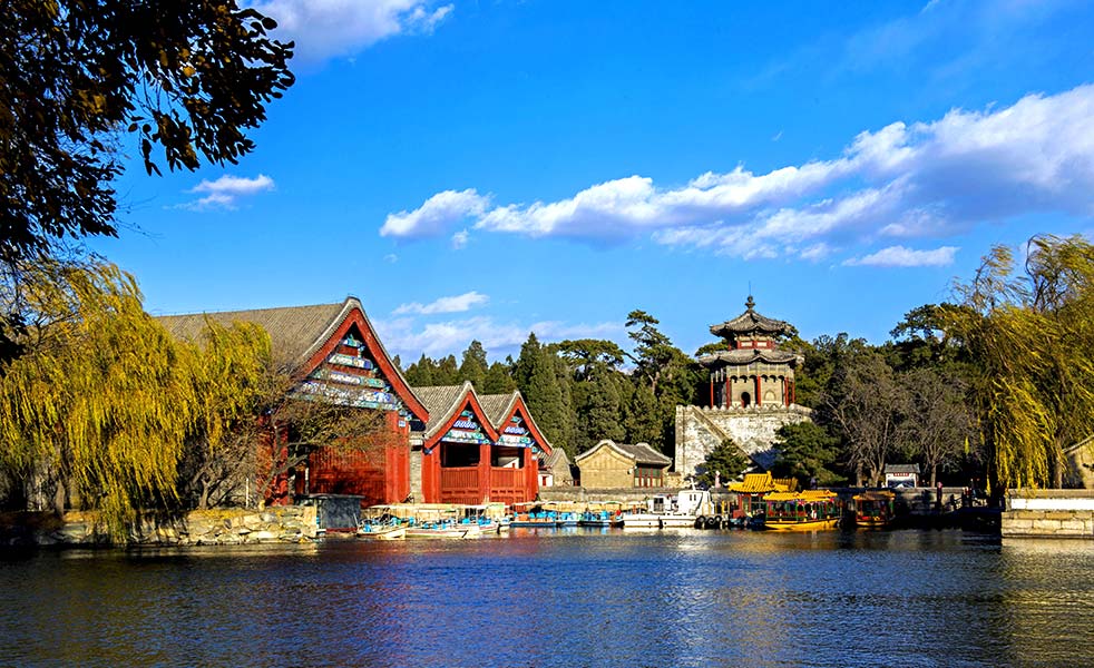 頤和園,中國清朝時期皇家園林,前身為清漪園,坐落在北京西郊,距城區(qū)15公里,全園占地3.009平方公里(其中頤和園世界文化遺產(chǎn)區(qū)面積是2.97平方公里),水面約占四分之三。與圓明園毗鄰。它是以昆明湖、萬壽山為基址,以杭州西湖為藍本,汲取江南園林的設計手法而建成的一座大型山水園林,也是保存最完整的一座皇家行宮御苑,被譽為“皇家園林博物館“。
