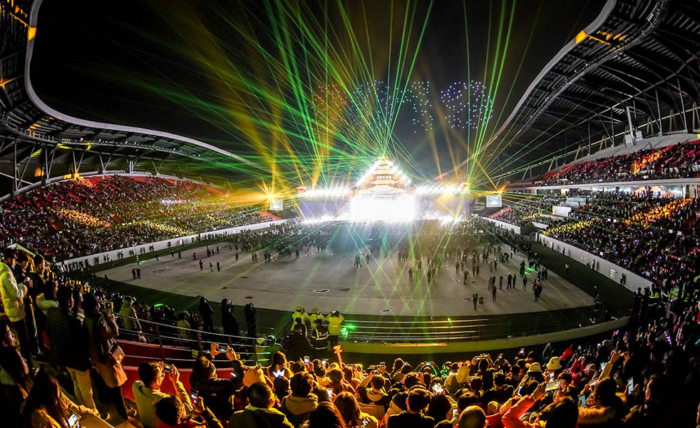 2月19日晚,上演了一場璀璨浪漫的“我和我的祖國——元宵焰火音樂會”。 晚會用特色創(chuàng)意節(jié)目+多元光影展示+璀璨煙花秀的組合匯演,與現(xiàn)場超過5萬多名觀眾聯(lián)歡。