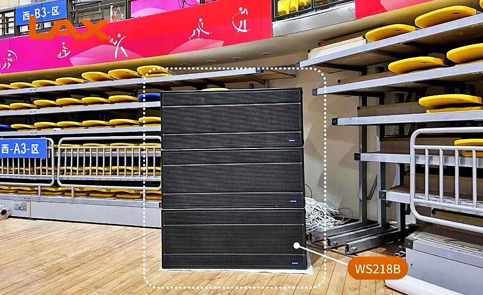主席臺兩側(cè)落地擺放WS218B超低揚聲器,每側(cè)3只,覆蓋全部觀眾席區(qū)域。