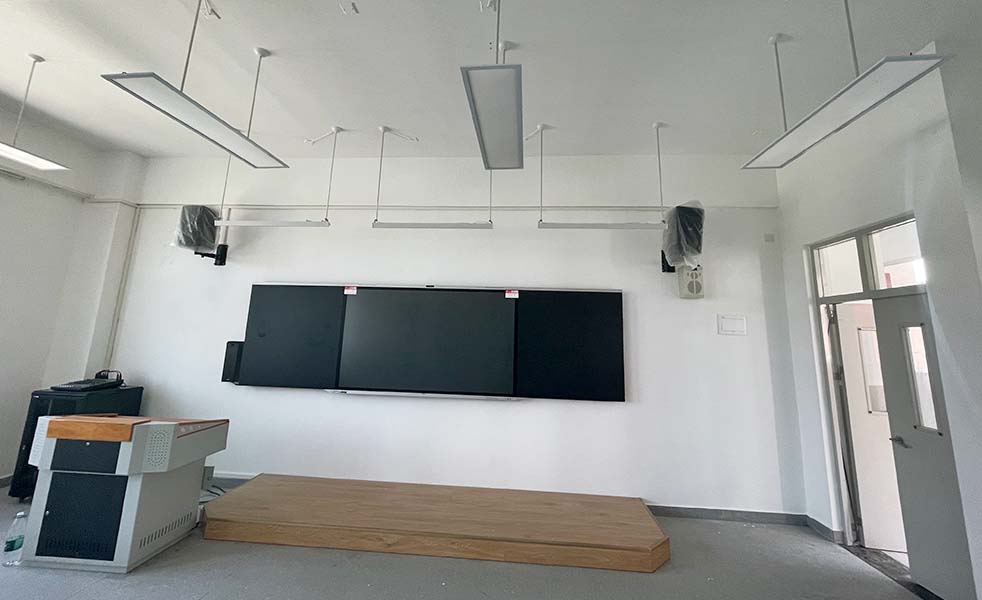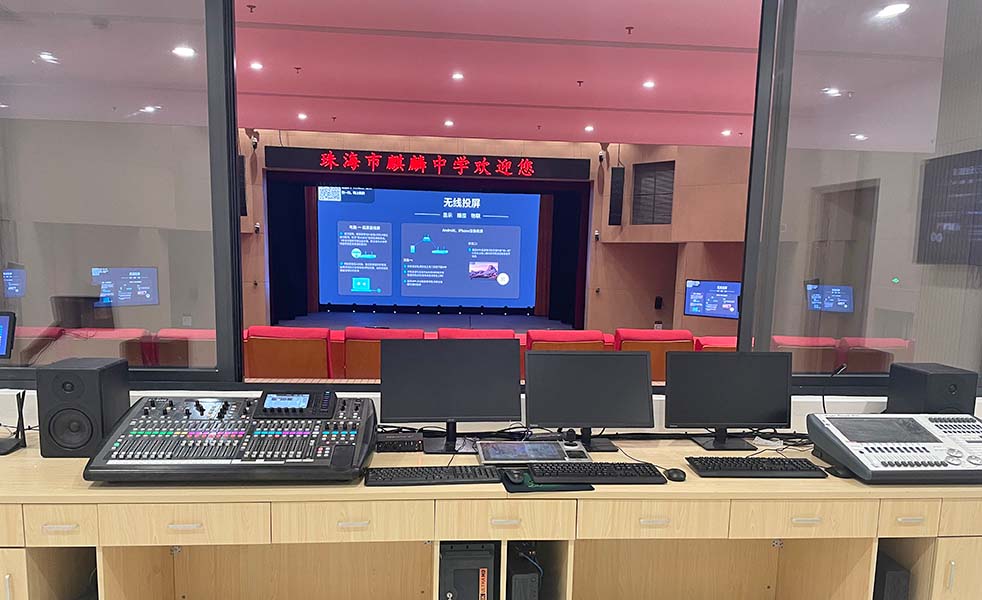 我司為麒麟中學(xué)報(bào)告廳、會(huì)議室、多媒體室、錄播室提供聲光視系統(tǒng)整體解決方案。包括專(zhuān)業(yè)擴(kuò)聲系統(tǒng)、會(huì)議系統(tǒng)、錄播系統(tǒng)、燈光系統(tǒng)、大屏系統(tǒng)、中控系統(tǒng)、矩陣系統(tǒng)、舞臺(tái)機(jī)械等系統(tǒng)。