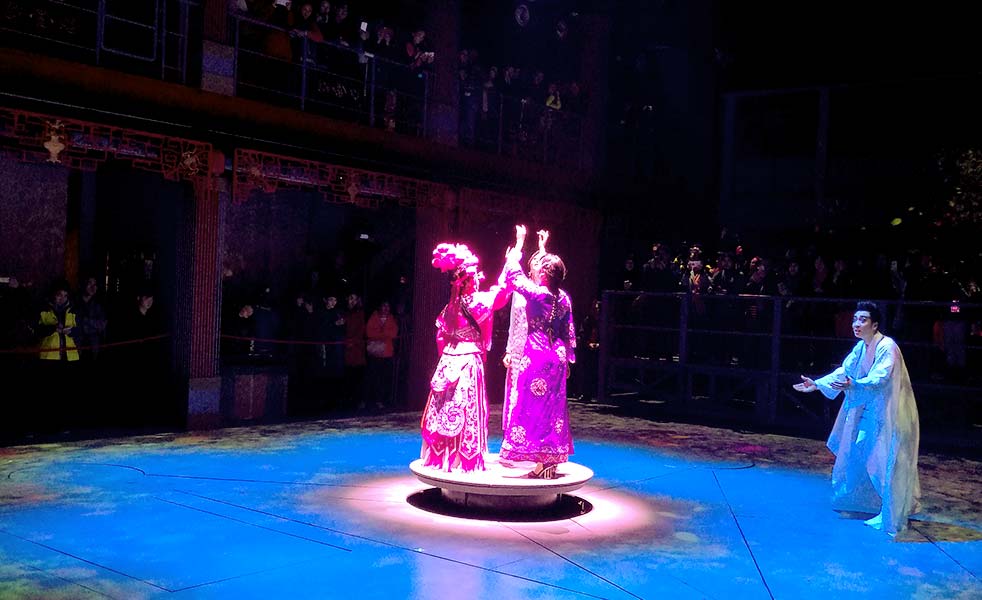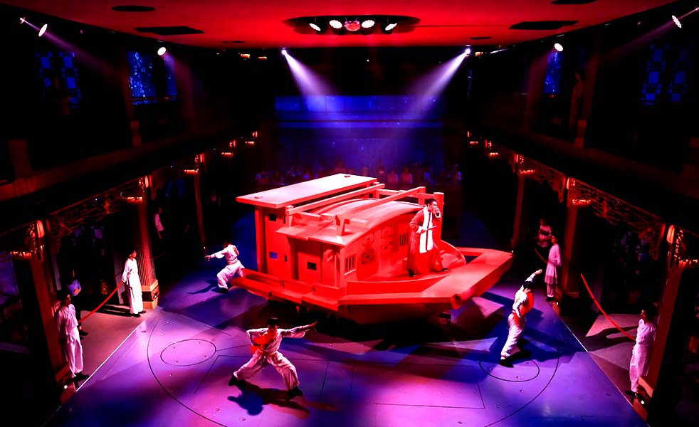 《船說》演出在“珠江紅船號“上進行。游船從海心沙碼頭駛出,在珠江上航行的90分鐘內(nèi),游客將收獲三種截然不同的體驗。首先,將觀看一個用話劇、歌舞、聲光電、高科技機械臂等多種藝術(shù)手段和表現(xiàn)形式講述的粵劇人的故事;接著,將欣賞一段新編的粵劇《月圓花好》,體驗粵劇樂韻;然后,觀眾將瞬間從百年前回到現(xiàn)代,一邊欣賞窗外流光溢彩的珠江夜景,一邊回味百年前的戲班故事,于虛實間體驗時光荏苒、城市變遷。