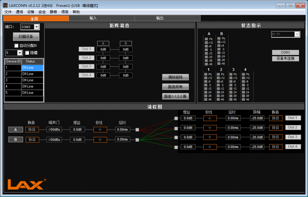 搭配該模塊的PC端控制軟件-LAX CON,遠(yuǎn)程調(diào)控音箱系統(tǒng)參數(shù),使用時(shí)更加靈活方便。LAX CON支持靜音、增益、EQ/高低通、限幅、延遲、溫度設(shè)定、橋接、補(bǔ)償?shù)葏?shù)處理。