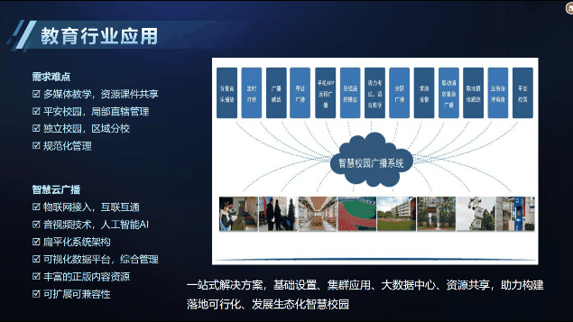 一站式解決方案,基礎(chǔ)設(shè)置、集群應(yīng)用、大數(shù)據(jù)中心、資源共享,助力構(gòu)建,落地可行化、發(fā)展生態(tài)化智慧校園。