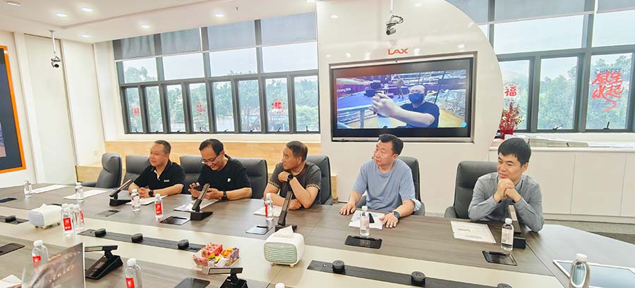 5月10日下午,參加“2023GETshow廣州(國(guó)際)演藝設(shè)備智能聲光產(chǎn)品技術(shù)展覽會(huì)”的陜西省舞美學(xué)會(huì)副會(huì)長(zhǎng)薛國(guó)玉,副會(huì)長(zhǎng)兼秘書長(zhǎng)張國(guó)強(qiáng),副會(huì)長(zhǎng)楊宏文、張小鵬、張亞雄,常務(wù)副秘書長(zhǎng)兼辦公室主任王忠元,燈光專委會(huì)主任委員王冬,專家顧問(wèn)委員會(huì)主任委員孔力,舞臺(tái)設(shè)備技術(shù)專委會(huì)副主任委員魏文等一行專程前往廣州市番禺區(qū)廣州市銳豐音響科技股份有限公司進(jìn)行參觀訪問(wèn)。