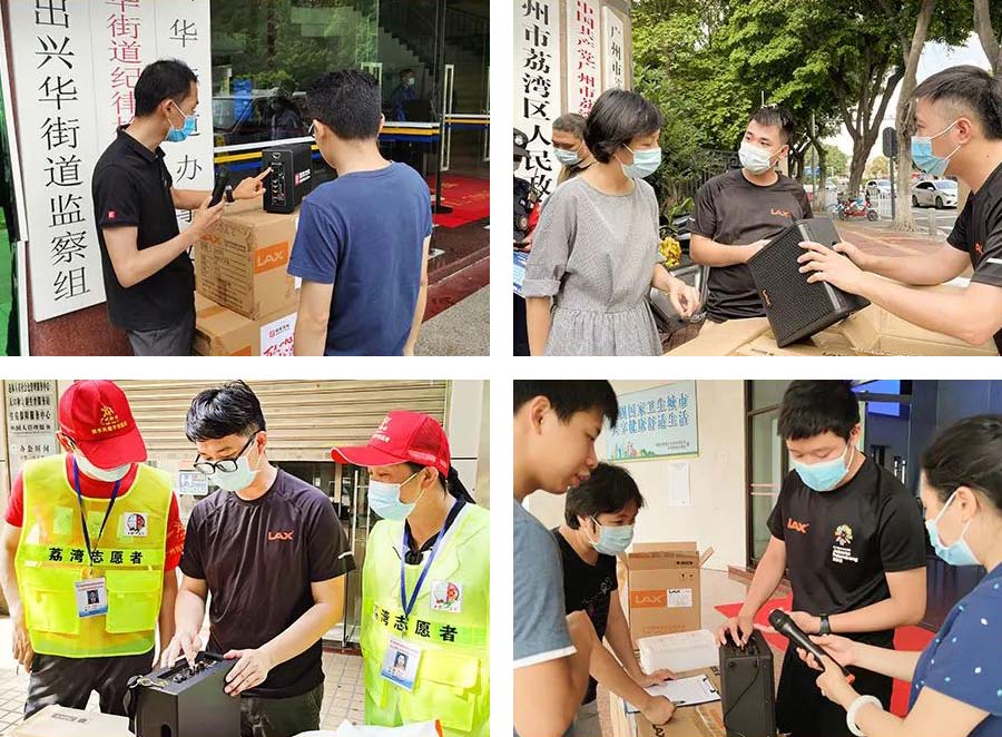 今年自5月末起,廣州市荔灣區(qū)一例新冠確診信息打破了這座城市的寧靜。在此全民抗疫的時(shí)刻, 銳豐LAX積極并快速做出響應(yīng), 把社會(huì)責(zé)任放在第一位, 為前線貢獻(xiàn)綿薄之力。先后奔赴廣州荔灣區(qū)、番禺區(qū)、天河區(qū)、南沙區(qū)、增城區(qū)、海珠區(qū)越秀區(qū)捐予便攜式音箱。應(yīng)用于廣州市各區(qū)1200個(gè)防疫點(diǎn)作宣傳防疫知識(shí),普及廣大市民。
