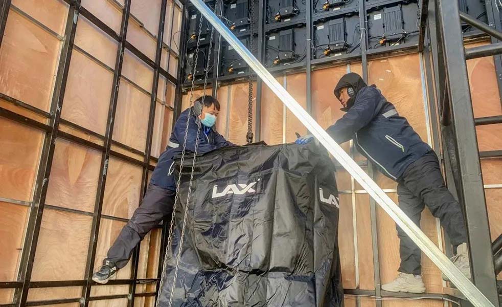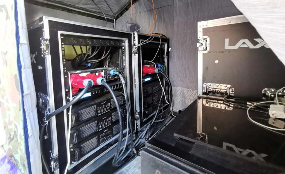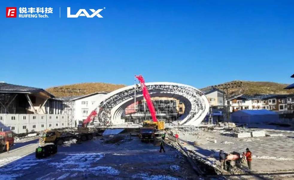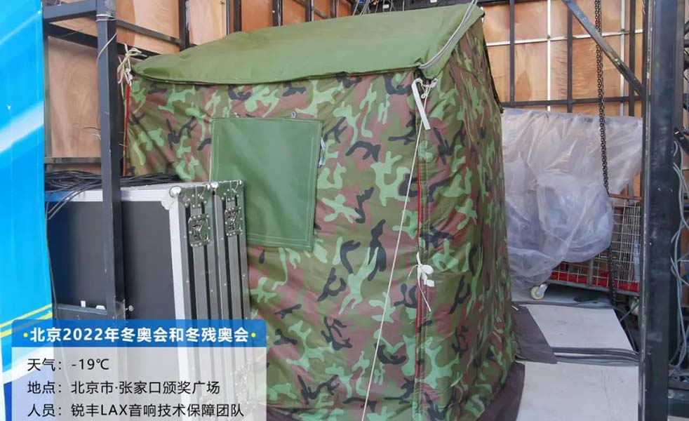 關(guān)于張家口頒獎(jiǎng)廣場(chǎng)舞臺(tái),銳豐科技LAX團(tuán)隊(duì)在去年中與北京相關(guān)單位合作,經(jīng)過(guò)了前期溝通,場(chǎng)地勘察,產(chǎn)品測(cè)試等多方面的準(zhǔn)備。如張家口舞臺(tái)在2021年11月進(jìn)行舞臺(tái)搭建和相關(guān)設(shè)備安裝,在12月下旬完成了交臺(tái)驗(yàn)收。三大頒獎(jiǎng)舞臺(tái)整個(gè)音響團(tuán)隊(duì)多達(dá)30人,我司的技術(shù)工程師主要負(fù)責(zé)擴(kuò)聲系統(tǒng)的設(shè)備保障。張家口舞臺(tái)位于戶外,所以工作環(huán)境特別困難,氣溫特別低,低溫對(duì)于人員工作和設(shè)備使用都分外艱巨。張家口舞臺(tái)使用的是LAX戶外演出的線陣列擴(kuò)聲系統(tǒng),在多次項(xiàng)目都有使用過(guò):如國(guó)慶閱兵大典、廣州過(guò)年花城看花、新疆國(guó)際會(huì)議中心戶外燈光秀等多次大型活動(dòng)戶外使用驗(yàn)證,加上系統(tǒng)工程師日夜按時(shí)按規(guī)的系統(tǒng)使用,實(shí)時(shí)監(jiān)控,才保證了整個(gè)活動(dòng)期間能夠安全穩(wěn)定的進(jìn)行。