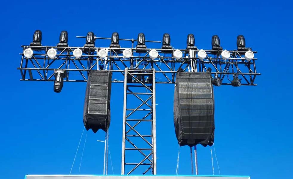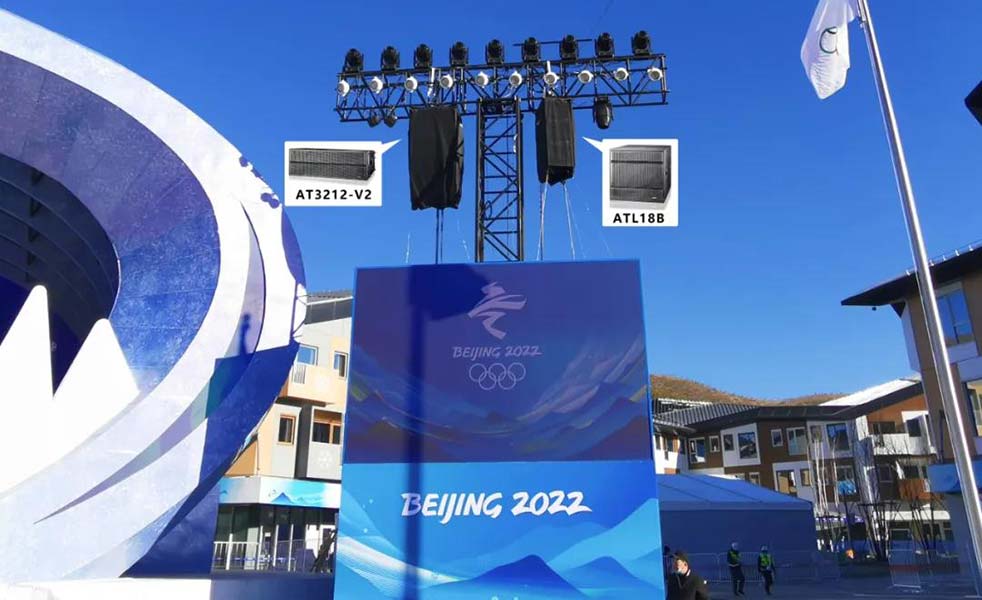 張家口舞臺(tái)使用了兩組雙12寸的線陣列主擴(kuò)揚(yáng)聲器AT3212V2,保證在戶外兩千平廣場(chǎng)有足夠的聲壓。因?yàn)槲杳琅渲卦O(shè)備要求,我們選型了單18寸可吊掛的大功率超低頻揚(yáng)聲器ATL18B,保證有足夠的低頻功率輸出,盡量縮小體積以及重量。后級(jí)設(shè)備準(zhǔn)備了設(shè)備間,在保障人員起早貪黑的辛勞工作下,保證功放開(kāi)機(jī)溫度在10度以上,確保了功放電子設(shè)備穩(wěn)定運(yùn)行。